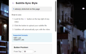 이 확장 프로그램의 사용자 친화적인 인터페이스는 비디오에 자막을 추가하는 과정을 간소화하여, 시청자가 신속하고 효율적으로 시청 경험을 사용자화할 수 있도록 보장합니다. Subtitle Sync Style을 사용하면 사용자는 기본 자막 옵션에 만족할 필요가 없으며, 보다 매력적이고 맞춤화된 비디오 경험을 창출할 수 있습니다. 이 도구는 온라인 비디오를 자주 시청하고 콘텐츠에 대한 이해나 즐거움을 향상시키고자 하는 사람들에게 귀중한 추가 요소입니다.
